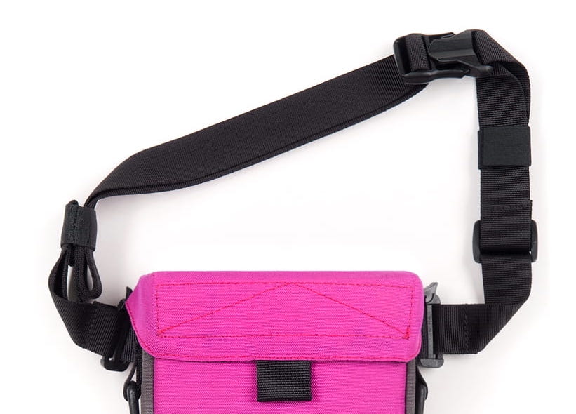 - Saszetka ma również wszyte dodatkowe szlufki, dzięki którym możemy przewlec przez pasek.