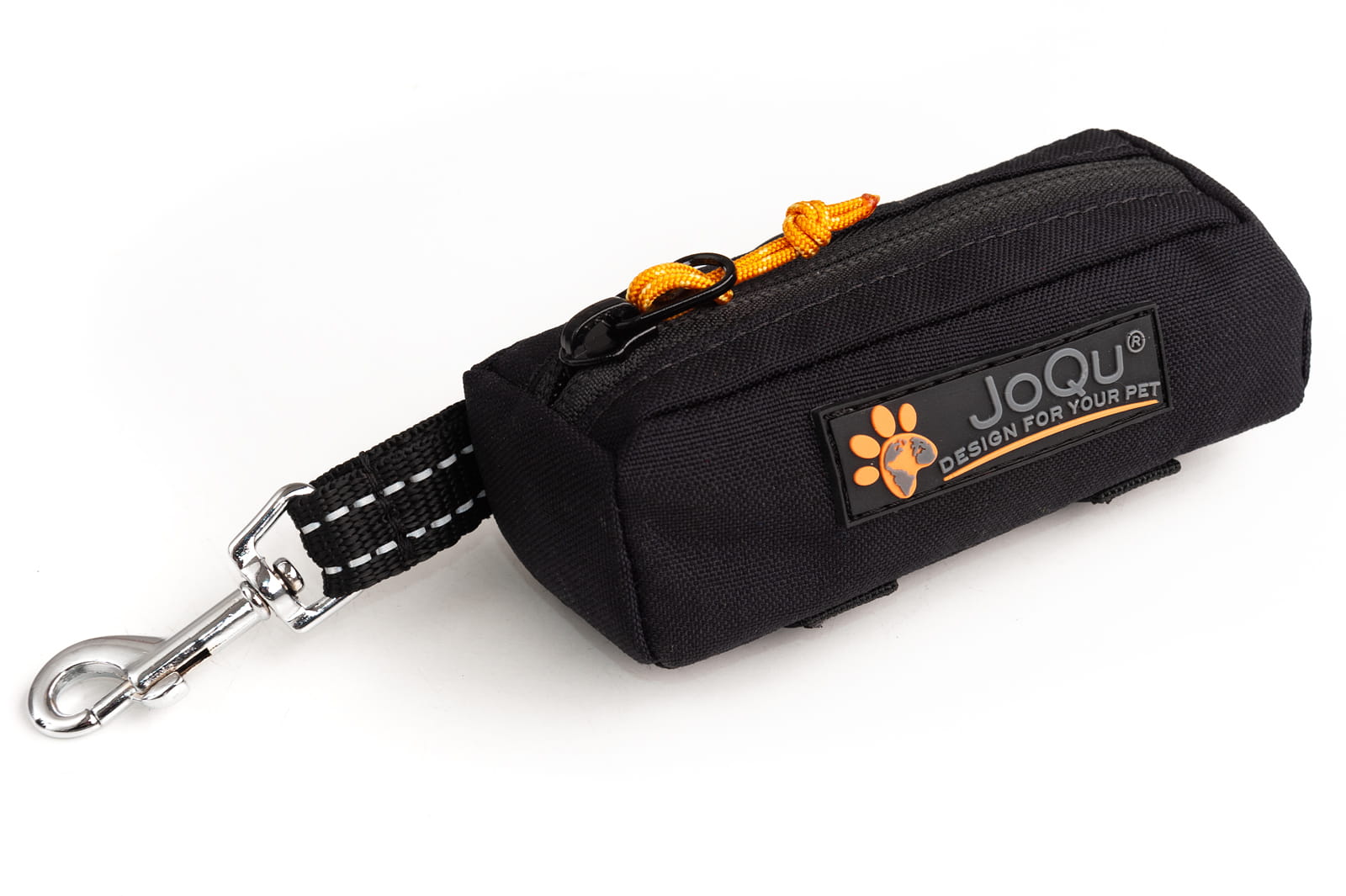 Etui na woreczki na psie nieczystości zostało odszyte z oryginalnej Cordury. Etui posiada specjalny gumowy aplikator, przez który wyjmujemy woreczki. Do etui zostały wszyte dwie elastyczne szlufki, przez które można przeciągnąć smycz. Etui posiada również karabinek, którym podpinamy etui np. do smyczy. Do zamykania został użyty wysokiej jakości zamek YKK. Posiada karabińczyk ze stali nierdzewnej oraz element odblaskowy.