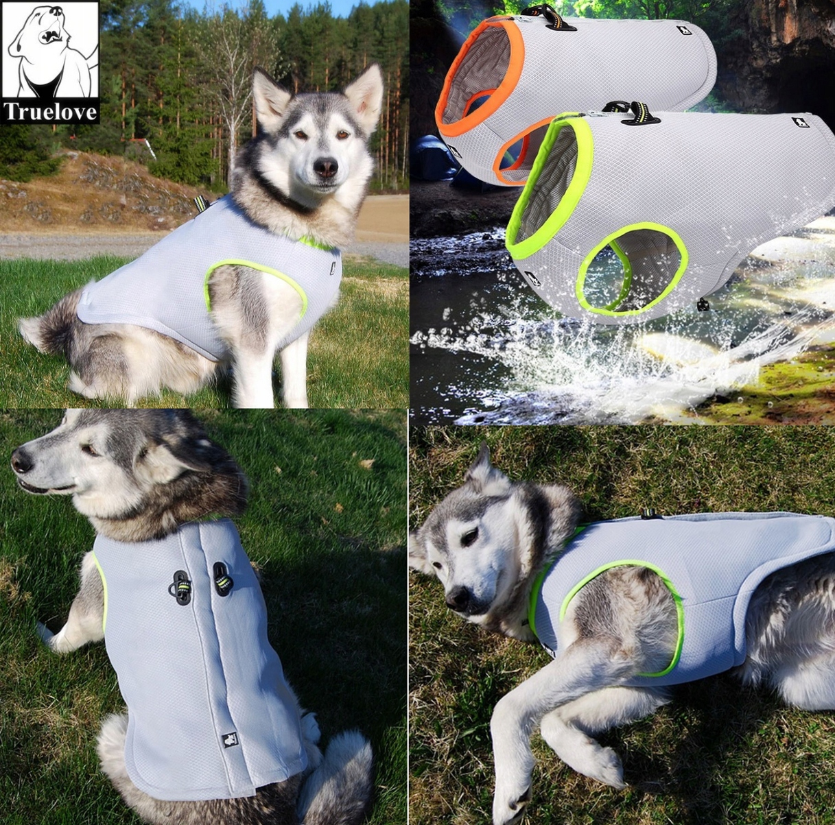 Upały potrafią być bardzo uciążliwe, a naszym zadaniem jest odpowiednio zabezpieczyć psa przed przegrzaniem. Kamizelka chłodząca Truelove jest niezastąpionym elementem psiej garderoby. Dzięki oddychającym i mocnym materiałom oraz zapięciom ze stopu cynku kamizelka może jednocześnie spełniać funkcję szelek i nie musimy ubierać psa w dodatkowe akcesoria. Trzywarstwowa konstrukcja kamizelki wykorzystuje technologię chłodzenia wyparnego. Zewnętrzna warstwa odprowadza wilgoć i ułatwia parowanie, środkowa warstwa chłonie i przechowuje wodę, a warstwa wewnętrzna ochładza naszego psa.