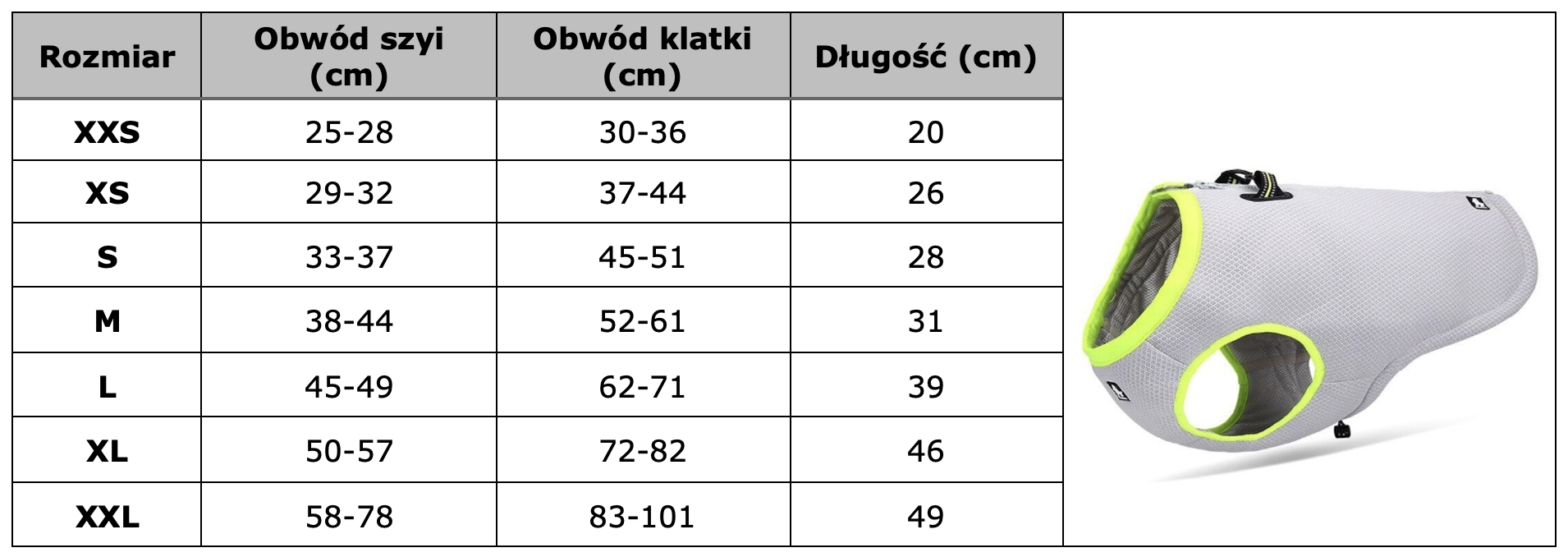- Jeśli Twój pies znajduje się na granicy rozmiarów sugerujemy wybór większej kamizelki. Aby zapewnić najwyższy komfort zakupów przez Internet, kupione u nas akcesoria zawsze można zwrócić lub wymienić na inny rozmiar lub model. :)