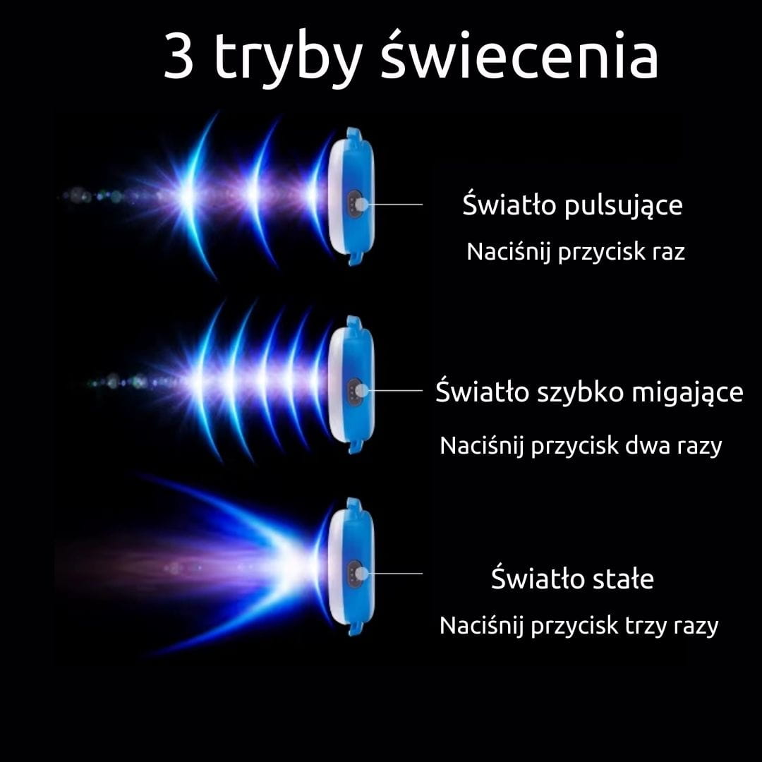 ✅ Trzy tryby świecenia – Możesz dostosować intensywność światła do warunków: światło ciągłe, wolny błysk lub szybki błysk.