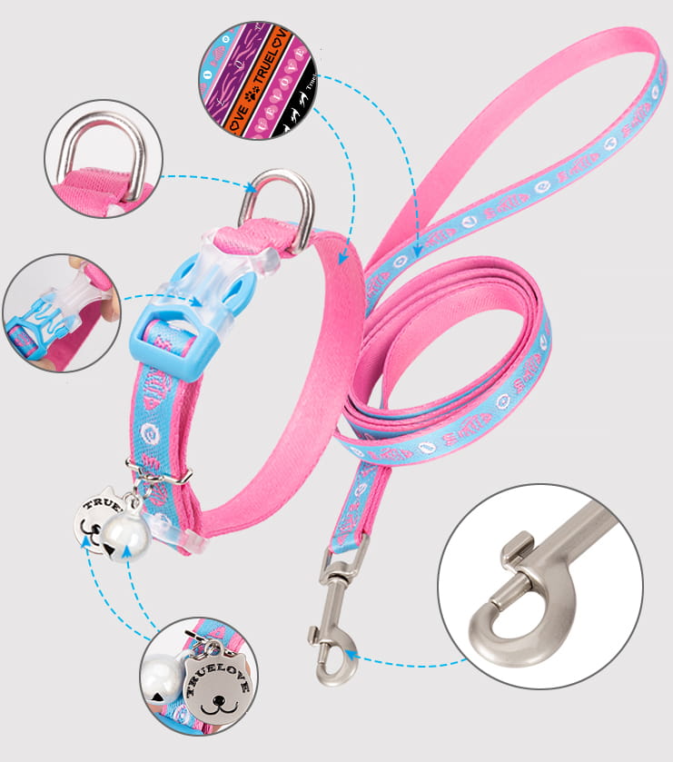 Zestaw spacerowy - obroża + smycz - Truelove dla szczeniąt, małych psów i kotów