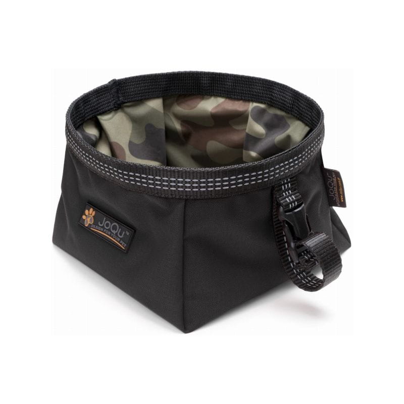 JoQu® Walk Bowl to turystyczna miska dla psa - zarówno na pokarm, jak i wodę. Jest bardzo lekka. W całości została uszyta z oryginalnej cordury, tkaniny w 100% wodoodpornej oraz odpornej na wszelkie uszkodzenia mechaniczne. Wewnętrzna warstwa to również tkanina wodoodporna i brudoodporna. Ważnym atutem jest także surowiec, z którego została wykonana. Jest to tkanina nietoksyczna. Do miski wszyta została dodatkowa taśma odblaskowa, która po przypięciu miski np. do plecaka czy smyczy sprawia, że jesteśmy widoczni po zmroku.