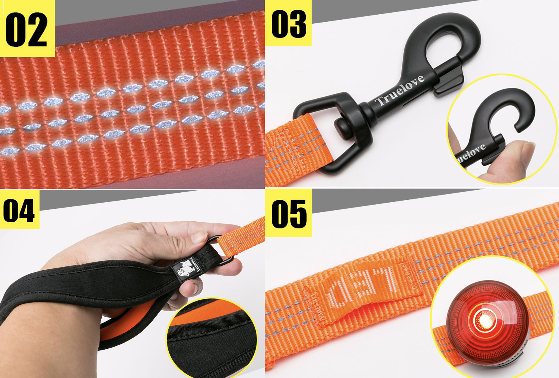 Lekka i jednocześnie wytrzymała smycz dla psa Truelove Lumen posiada odblaskowe przeszycia, które zapewniają lepsza widoczność po zmroku. Dodatkowo smycz posiada specjalną kieszeń na lampkę LED, to funkcjonalne rozwiązanie dla Twojej wygody. Smycz ma wygodną rączkę, a jej czyszczenie jest łatwe i bezproblemowe.