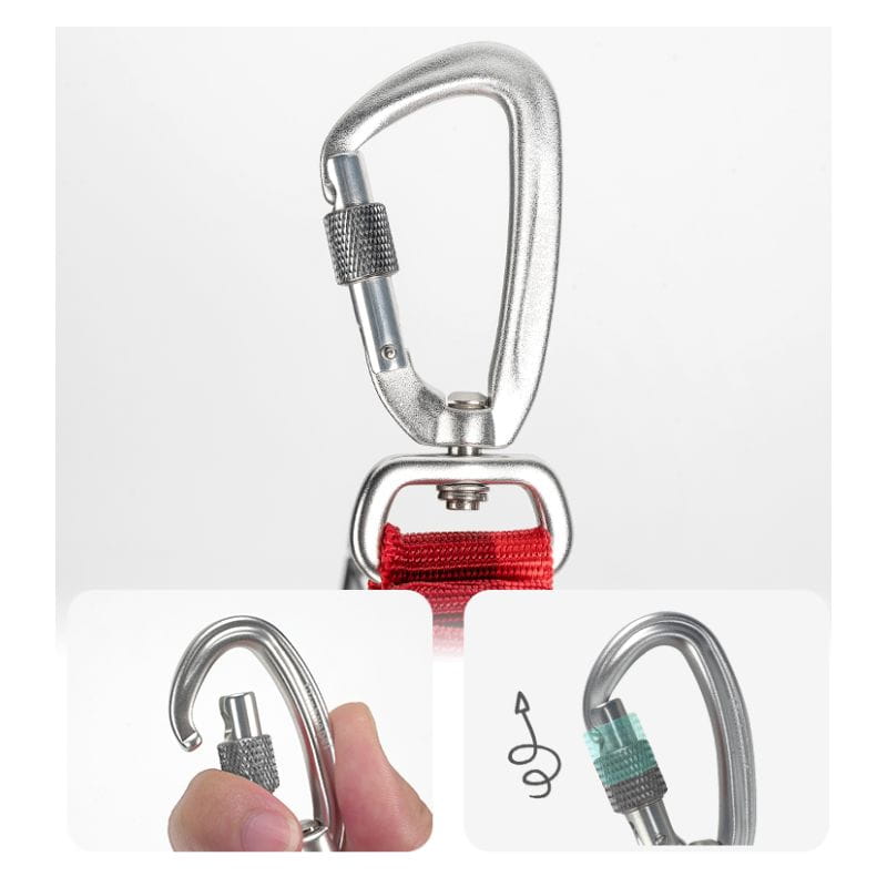- Smycz ma mocny i lekki karabińczyk ze stopu aluminium.
