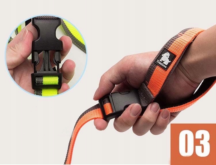 - Smycz posiada dodatkowy uchwyt przy karabińczyku, który pozwoli przytrzymać psa, gdy zajdzie taka potrzeba.