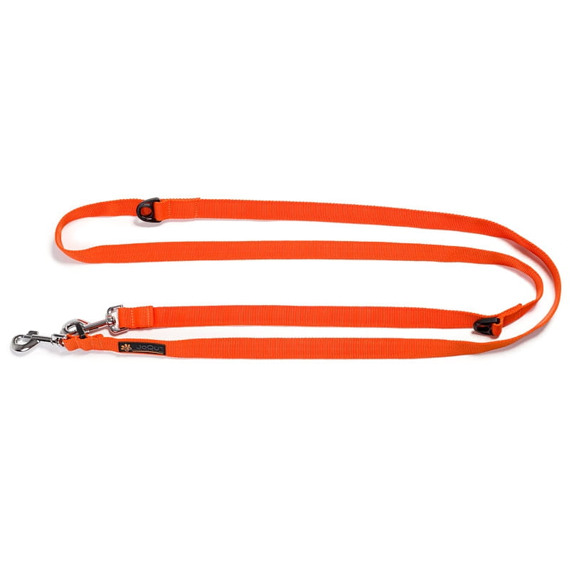 Smycz przepinana została wykonana z bardzo efektownej i miękkiej taśmy tunelowej. Dzięki zastosowaniu tego rodzaju taśmy, smycz trzyma się komfortowo nawet przy dużych psach. Posiada trzy punkty przepięcia co umożliwia prowadzenie psa na trzech różnych długościach. Całkowita długość smyczy to 500cm.