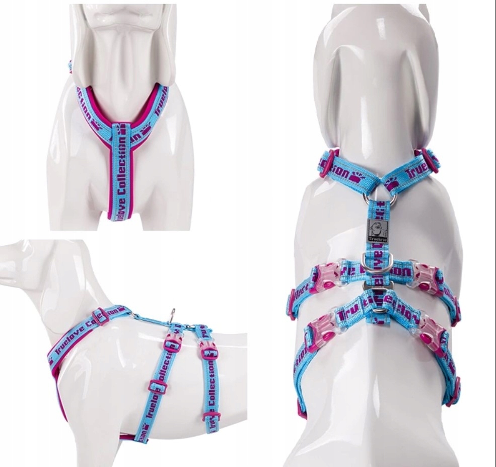 Szelki antyucieczkowe dla psa Truelove Funky błękitno-różowe