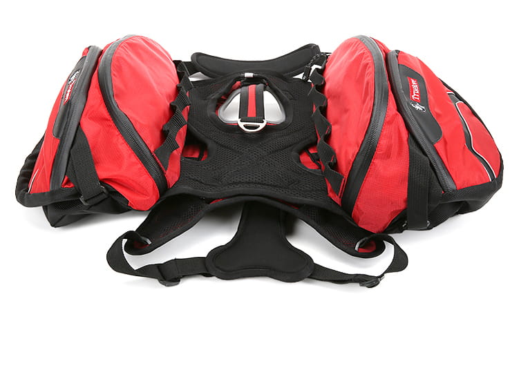 Solidne i wygodne szelki antyucieczkowe dla psa i plecak w jednym to idealne rozwiązanie dla osób lubiących długie piesze wędrówki z psem. Szelki posiadają dwie wzmocnione i pojemne sakwy po bokach. Możesz je w dowolnej chwili odpiąć jeśli ich nie potrzebujesz, wtedy Twoj pupil ma na sobie mocne szelki antyucieczkowe, idealne na długie wędrówki. Jeśli jednak chcesz skorzystać z sakiew, możesz je przypiąć i pomieszczą niezbędne akcesoria Twojego psa. Plecak wykonany jest z bardzo wytrzymałego, nieprzemakalnego materiału, więc można z niego korzystać w każdych warunkach.