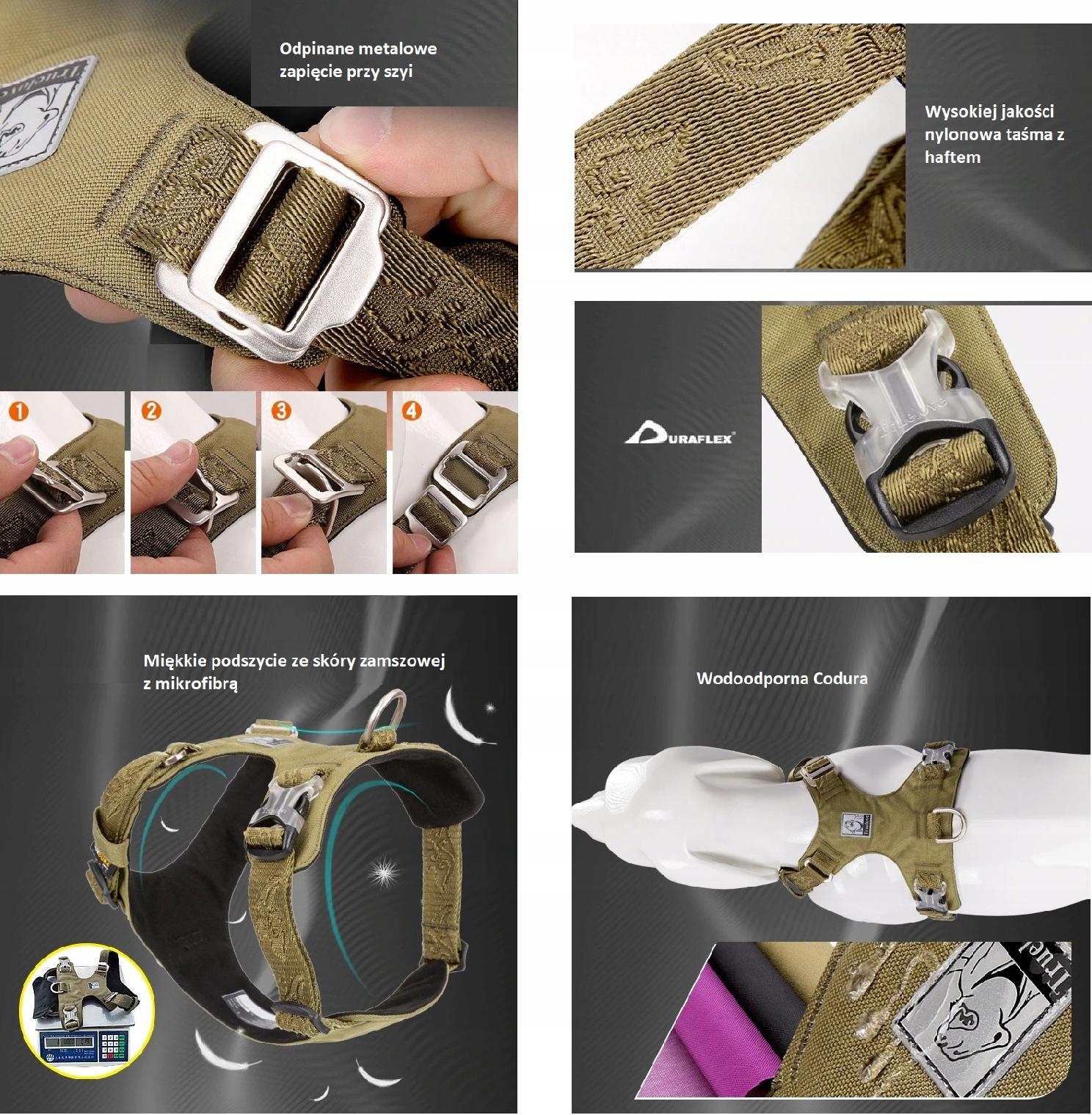 - Regulowane zapięcie wokół szyi i wokół klatki piersiowej czworonoga