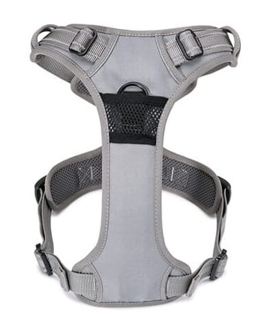 - Dwa punkty mocowania dwóch smyczy: D-ring ze stopu aluminium na plecach psa oraz o-ring ze stali nierdzewnej na klatce piersiowej psa.