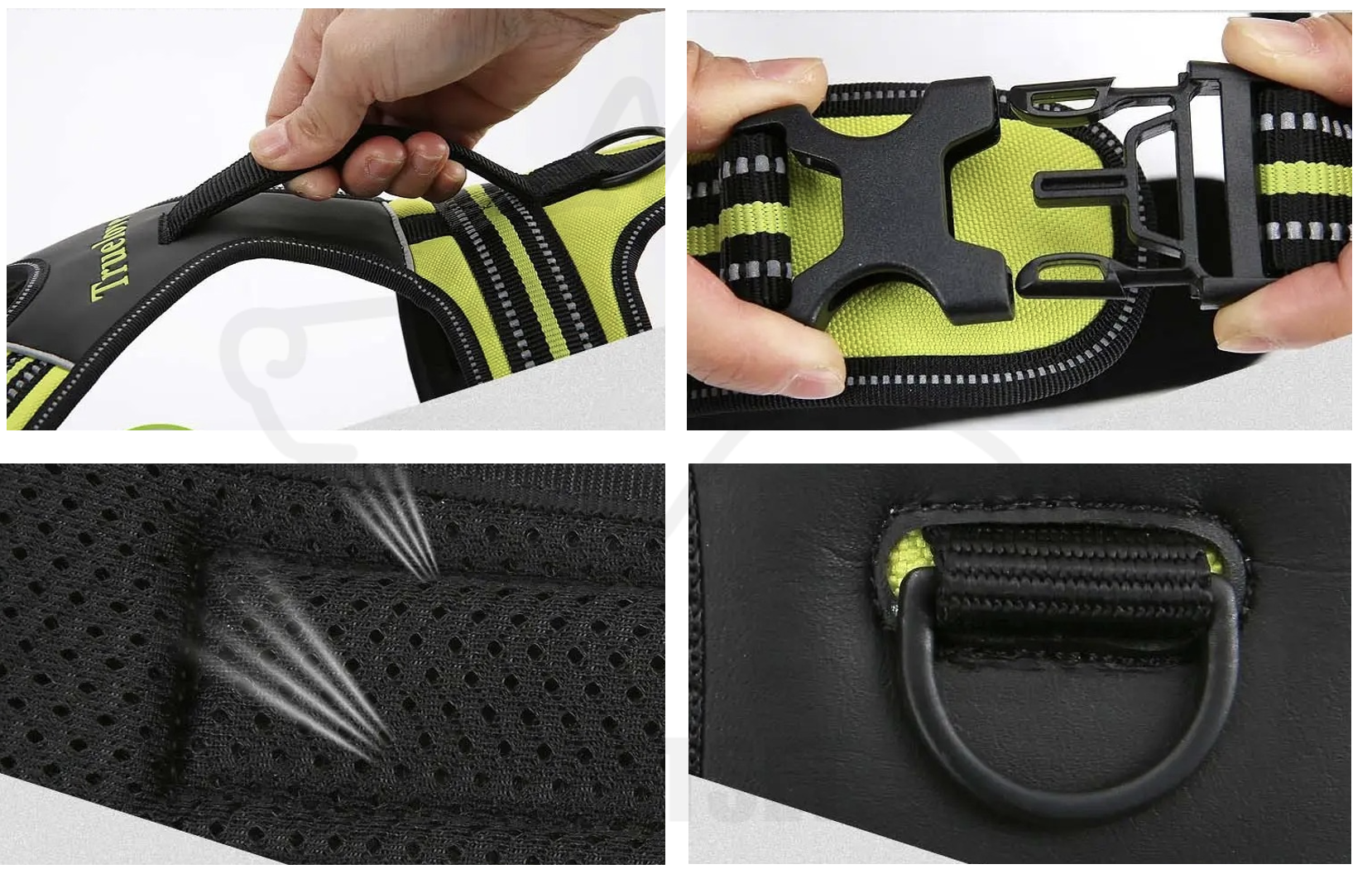 - Dwa punkty zaczepienia na smycz: z tyłu na grzbiecie psa oraz z przodu przy klatce piersiowej psa.